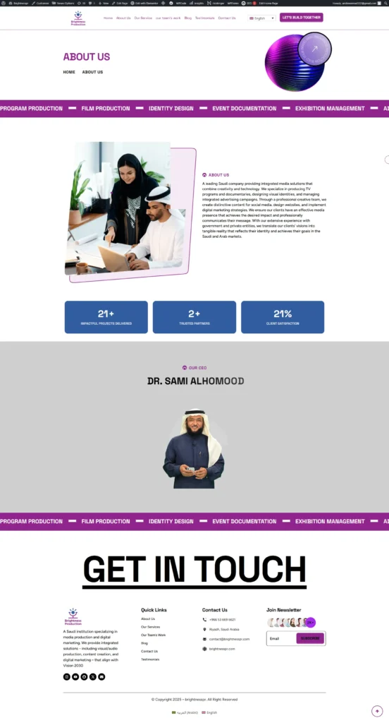 Brightness is a WordPress business website built using a third-party Envato theme. During development, the project faced complex multilingual issues that required direct modifications to the theme’s PHP code to ensure proper compatibility with translation functionality. The theme used for this project was Renev, and several structural adjustments were necessary before finalizing the website.