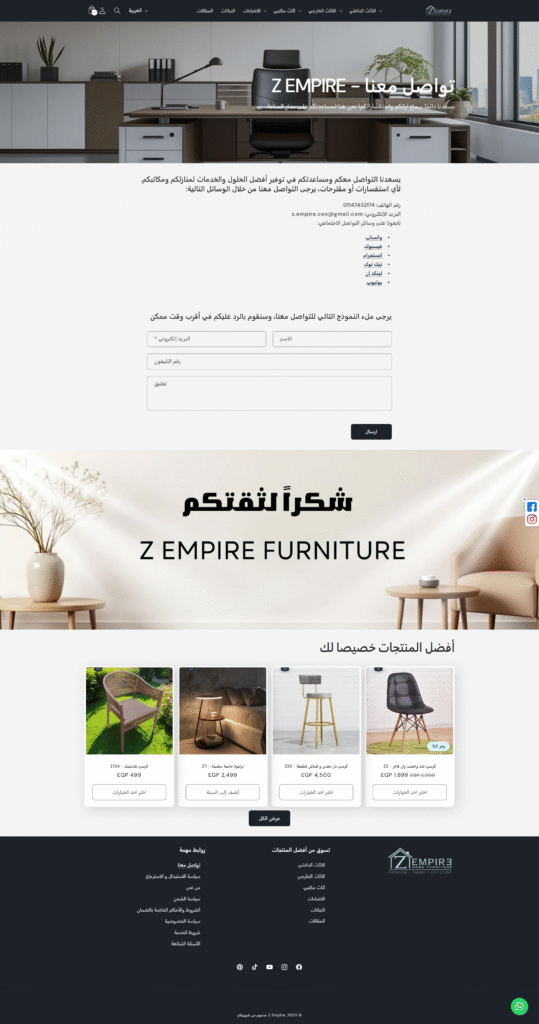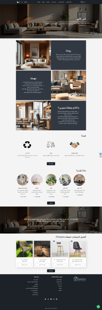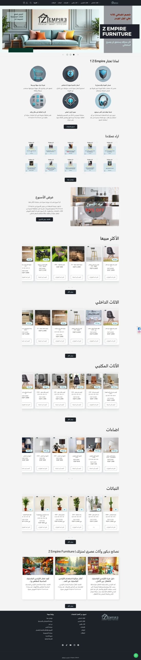 Z Empire Furniture is an Egyptian brand specializing in modern furniture. The project involved building a professional e-commerce website on Shopify, where I handled the full design, theme customization using Liquid, content writing, product uploads, and product photography/editing.